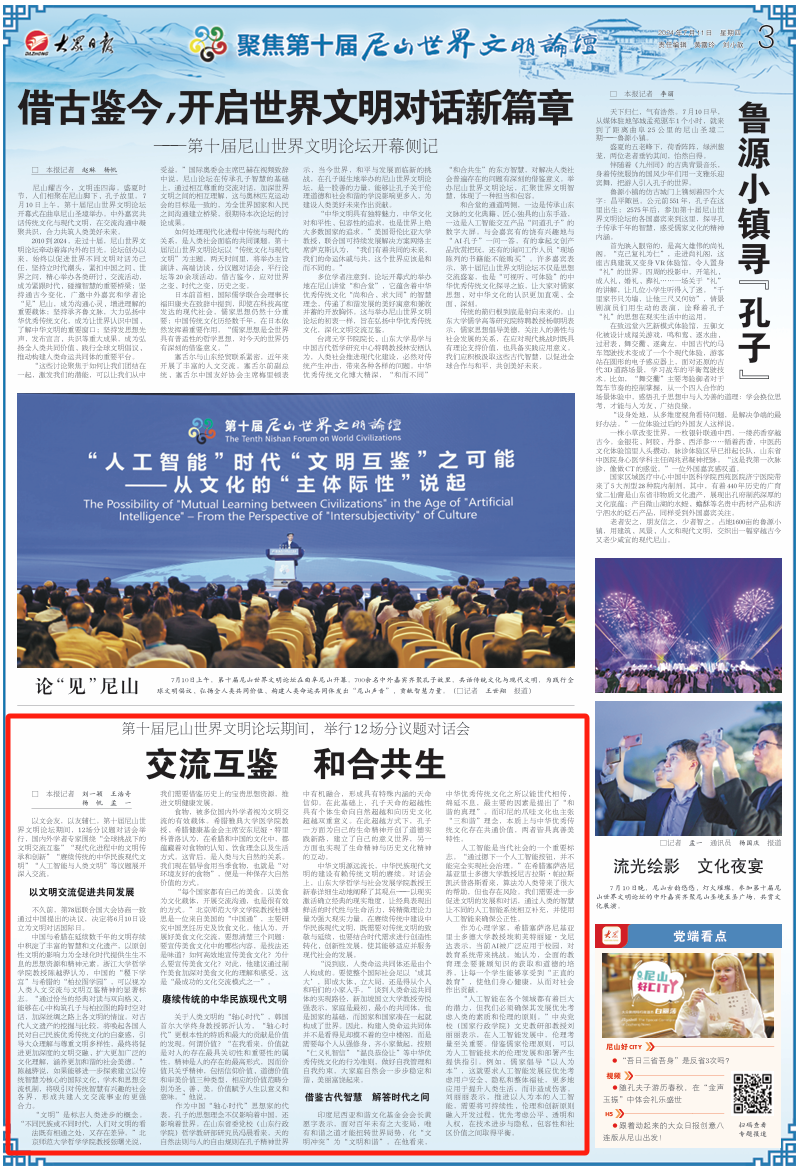 以文会友,以友辅仁。第十届尼山世界文明论坛期间,12场分议题对话会举行,国内外学者专家围绕“全球挑战下的文明交流互鉴”“现代化进程中的文明传承和创新”“赓续传统的中华民族现代文明”“人工智能与人类文明”等议题展开深入交流。