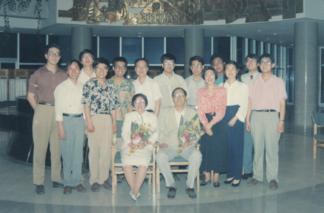 潘承洞(前排右)60岁生日时,他的研究生与潘承洞夫妇合影留念