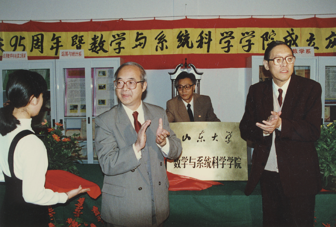 潘承洞(右一)在山东大学数学与系统科学学院成立大会上