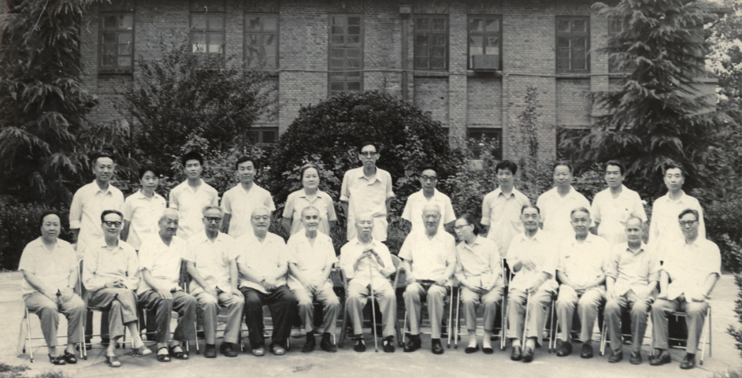 潘承洞(后排左六)初入山大与校领导合影。前排左起:邓从豪(左四)、孙汉卿(左六)、成仿吾(左七)、吴富恒(左八)