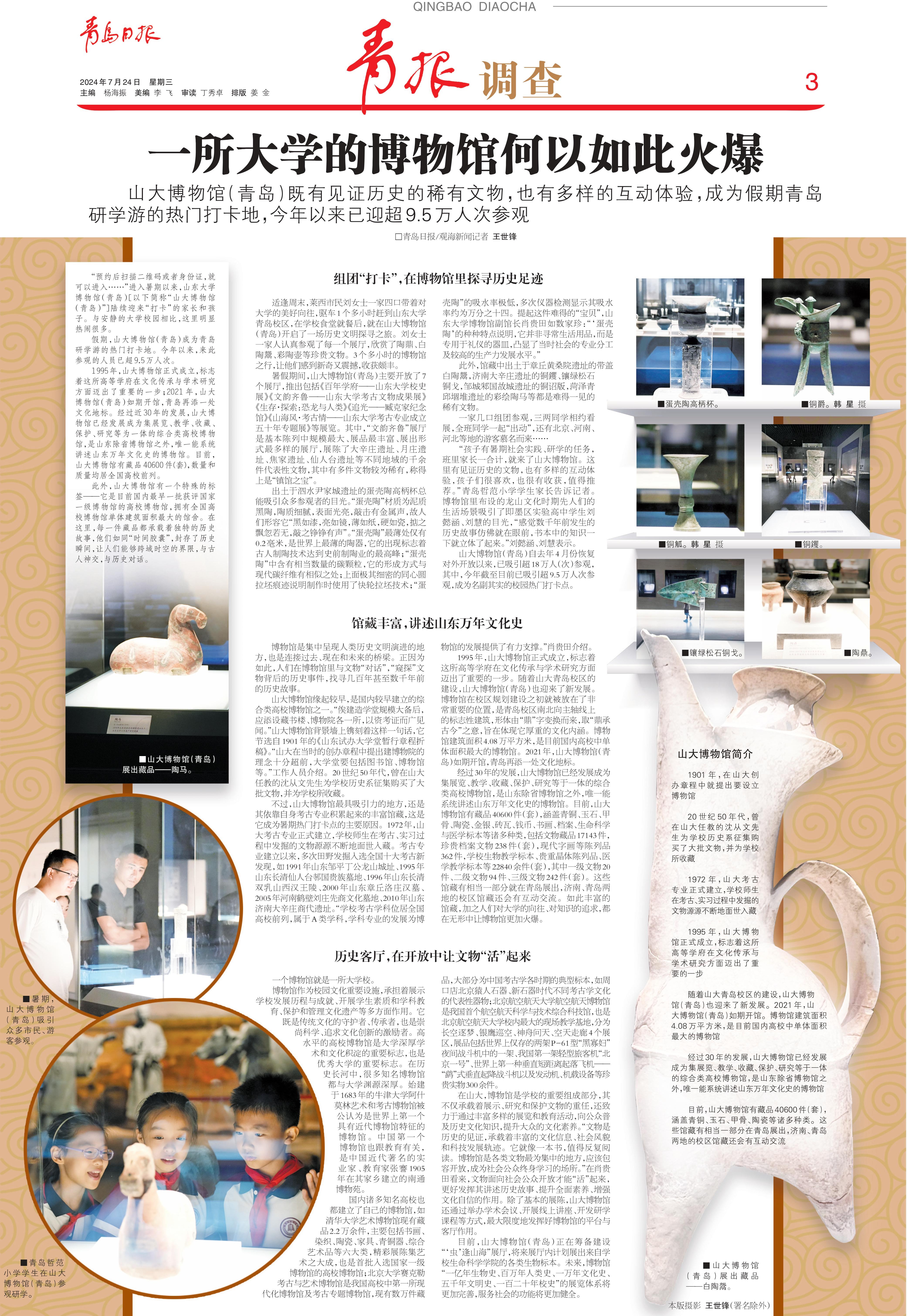 假期,山大博物馆(青岛)成为青岛研学游的热门打卡地。今年以来,来此参观的人员已超9.5万人次。