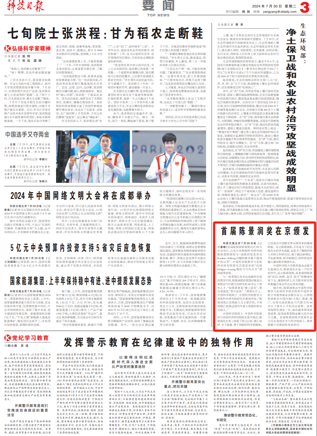中国科学院院士、中国科学院数学与系统科学研究院院长张平指出,陈景润先生身上体现了持之以恒、潜心钻研、甘于寂寞、勇于创新的科学家精神,已经成为中国数学界永续传承的精神财富。设立陈景润奖,不仅是为了纪念陈先生的学术成就,也是为了激励科研人员树立科研自信,敢于提出新理论、开拓新领域、探寻新路径,把科研追求融入建设数学强国中去。