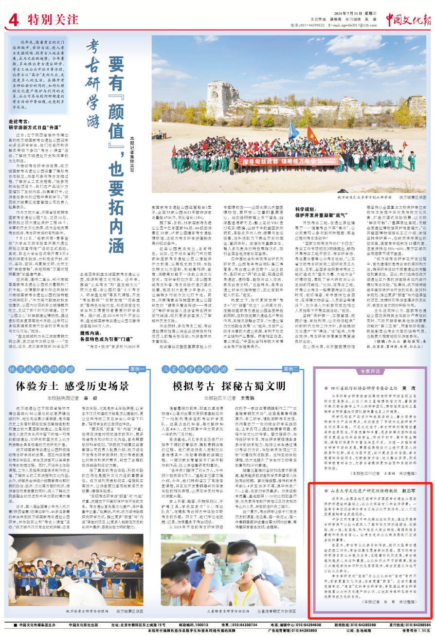 中华文明有着五千年光辉灿烂的历史,通过开展考古研学游可以让大家深入了解中华文明的连续性、创新性、统一性、包容性、和平性五大突出特性,增强民族自豪感和民族自信心。让考古走向公众确实是我们应该去做的事情。