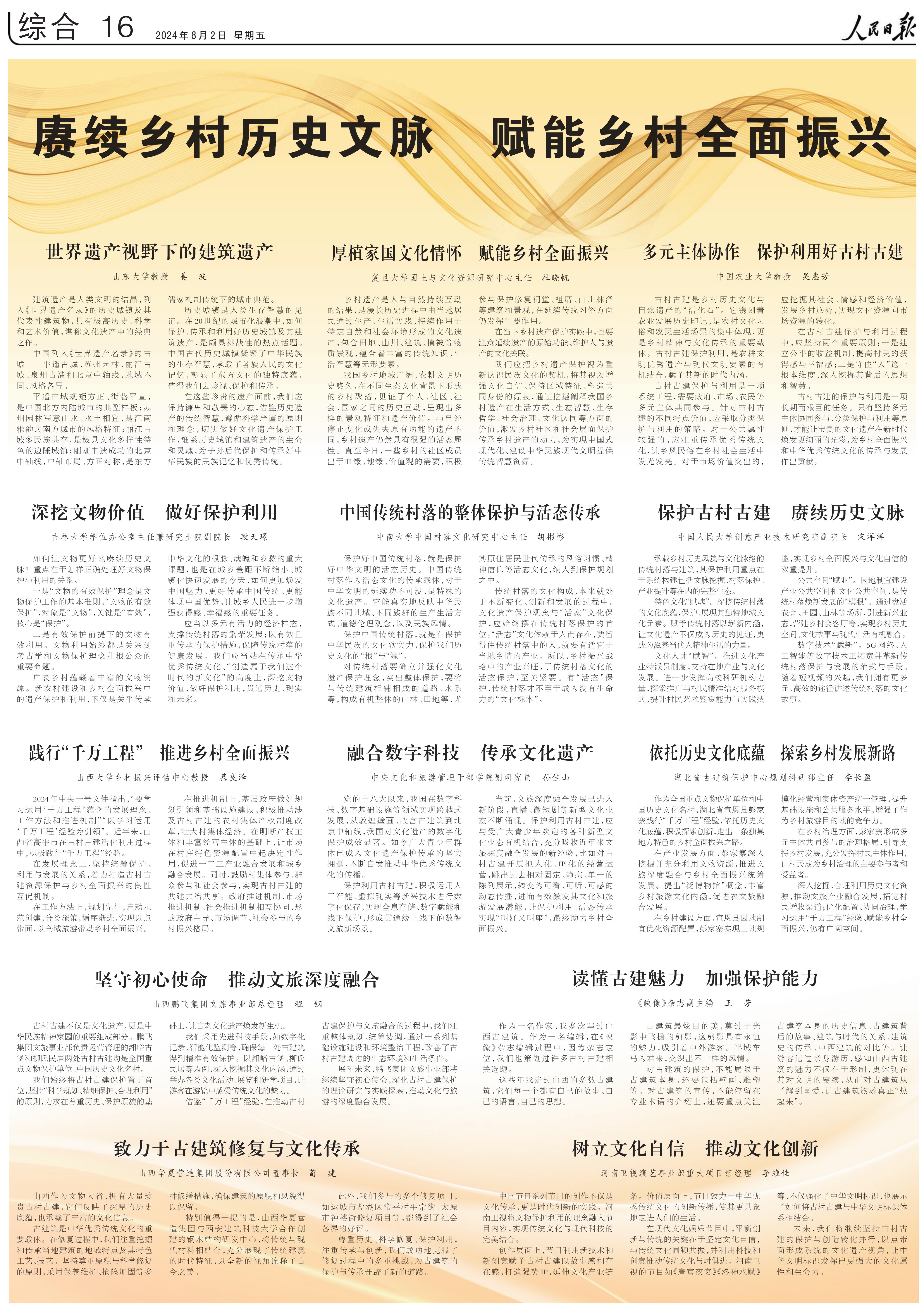 2024年中央一号文件指出,“要学习运用‘千万工程’蕴含的发展理念、工作方法和推进机制”“以学习运用‘千万工程’经验为引领”。近年来,山西省高平市在古村古建活化利用过程中,积极践行“千万工程”经验。