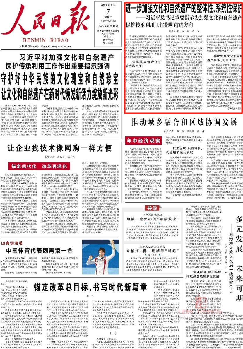 习近平总书记强调:“要以此次申遗成功为契机,进一步加强文化和自然遗产的整体性、系统性保护,切实提高遗产保护能力和水平,守护好中华民族的文化瑰宝和自然珍宝。”