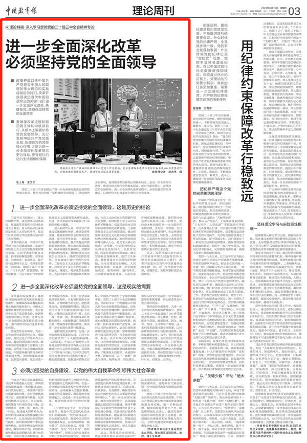 ■要确保改革这艘航船沿着正确航向破浪前行,从根本上需要依靠党的全面领导。充分发挥中国共产党总揽全局、协调各方的领导核心作用,才能为进一步全面深化改革提供更为强劲、更有韧性的动力支持和组织保障