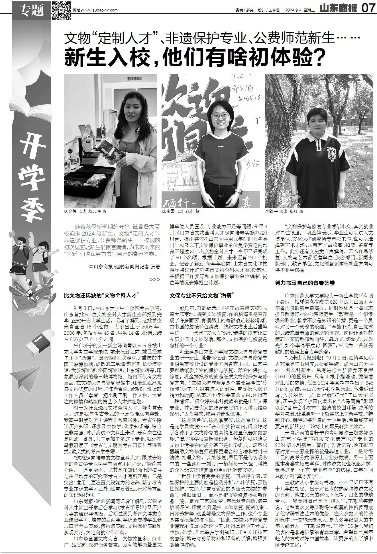 随着秋季新学期的开始,驻鲁各大高校迎来2024级新生。文物“定制人才”、非遗保护专业、公费师范新生……校园的初次见面让新生们惊喜满满,为未来而来的“萌新”们也在努力书写自己的青春答卷。