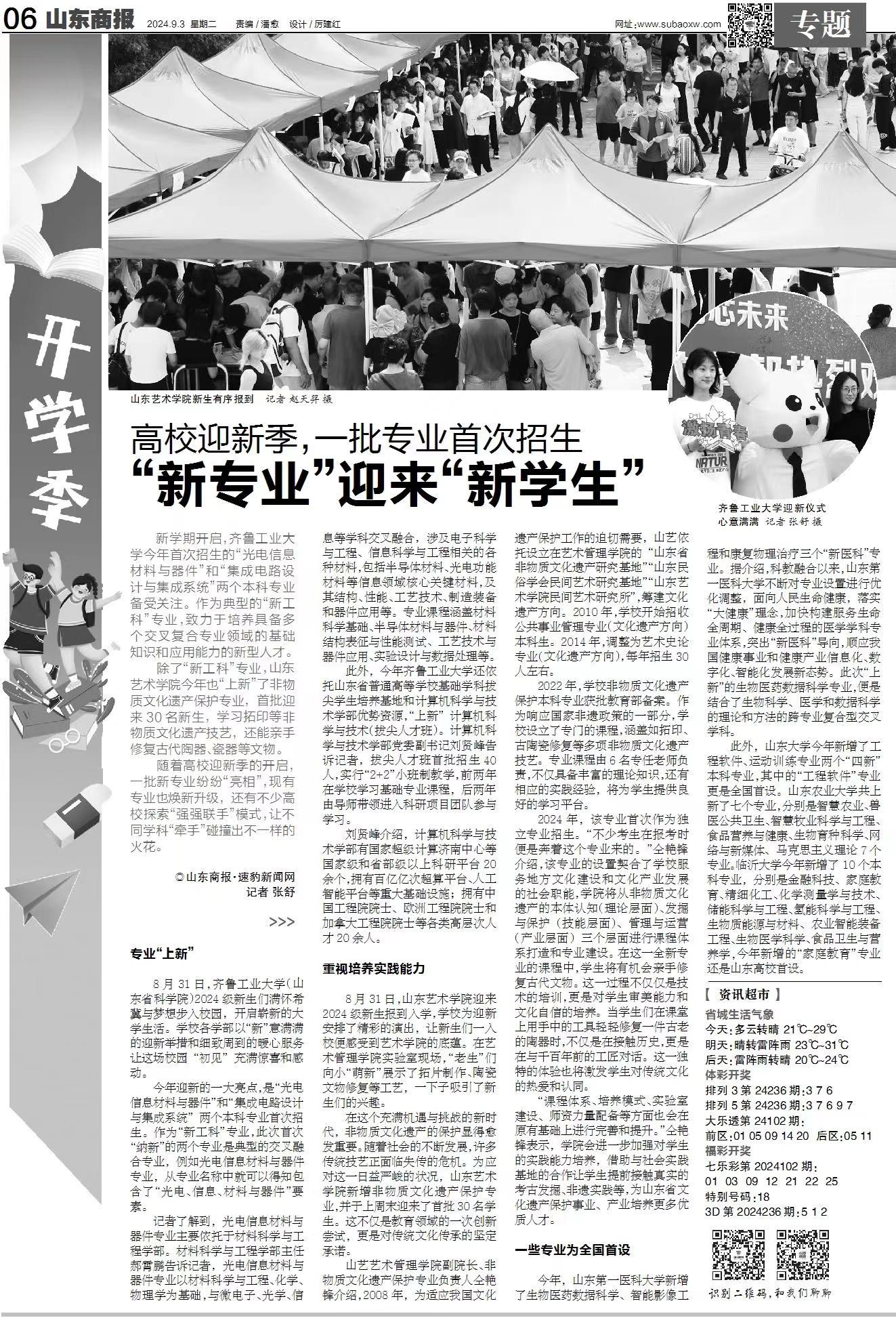 随着高校迎新季的开启,一批新专业纷纷“亮相”,现有专业也焕新升级,还有不少高校探索“强强联手”模式,让不同学科“牵手”碰撞出不一样的火花。◎山东商报·速豹新闻网记者张舒
