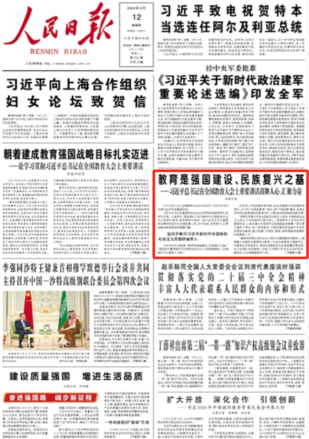 9月9日至10日,全国教育大会在北京召开,习近平总书记出席大会并发表重要讲话。