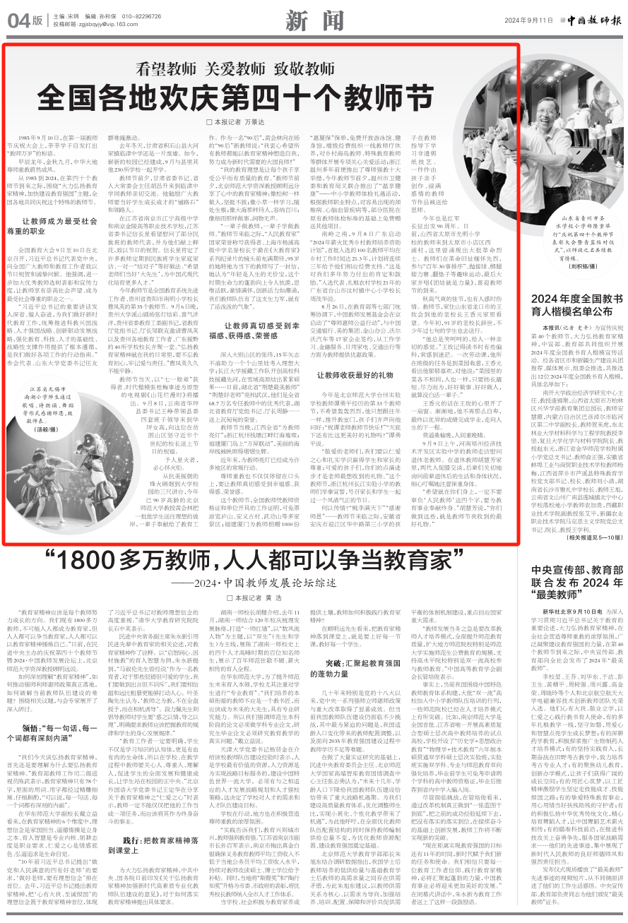 《中国教师报》2024年09月11日第4版 版名:新闻