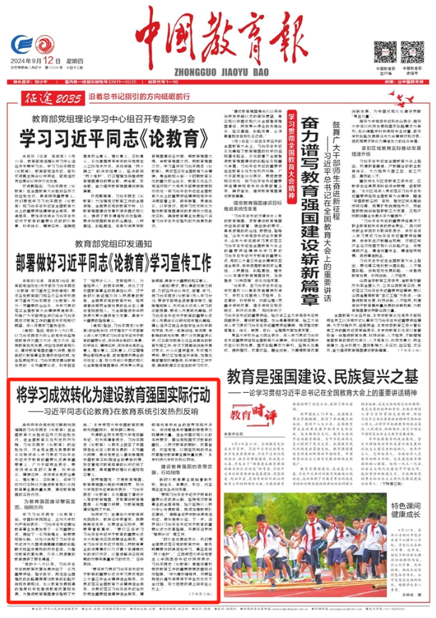 《中国教育报》2024年09月12日 第01版 版名:要闻