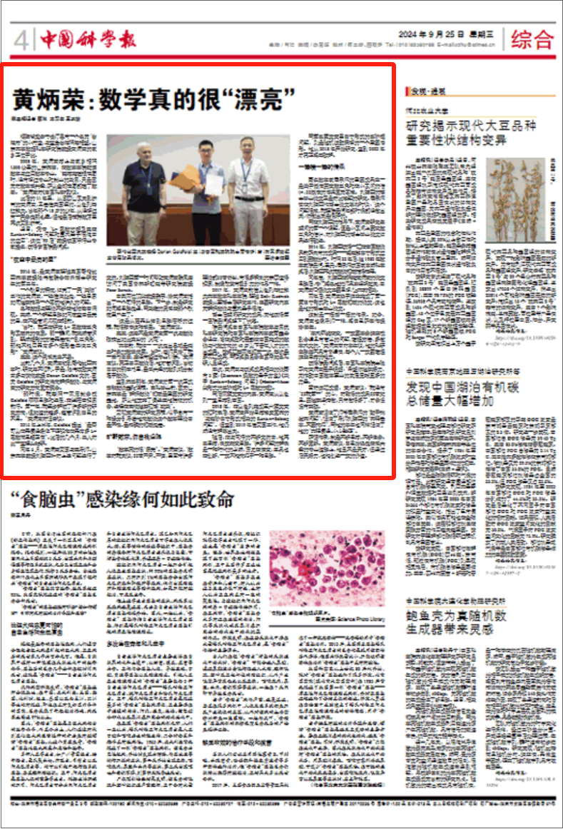 获得陈景润奖后,中国科学院院士张平向黄炳荣表示祝贺:“希望你继续努力,为推动中国数学事业的发展贡献更多的力量。”
