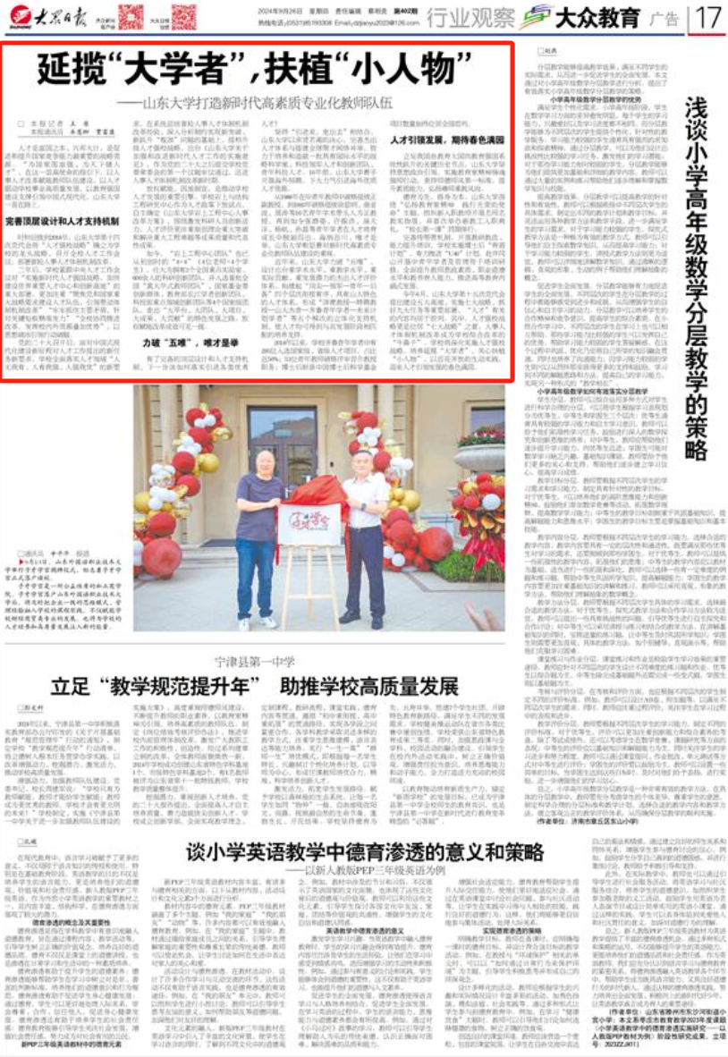 立足我国由教育大国向教育强国系统性跃升的关键历史节点,山东大学坚持思想政治引领,实施教育家精神铸魂强师行动,秉持师德师风第一标准,提升素质能力,弘扬尊师重教风尚。