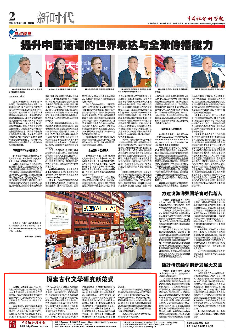 9月28日,古代文学研究范式新探索研讨会暨2024山东省古典文学学会年会在济南举行。与会学者围绕中国古代文学前沿问题研究、中国古代文学研究范式的历史变迁与创新等议题展开交流研讨。