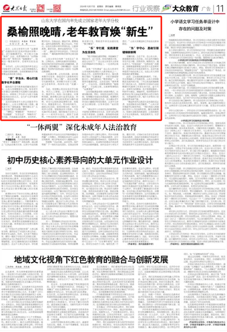 今年3月,山东大学在国内率先成立了国家老年大学分校,这是对积极服务人口老龄化国家战略、全面部署高校老年教育事业改革的有力响应。