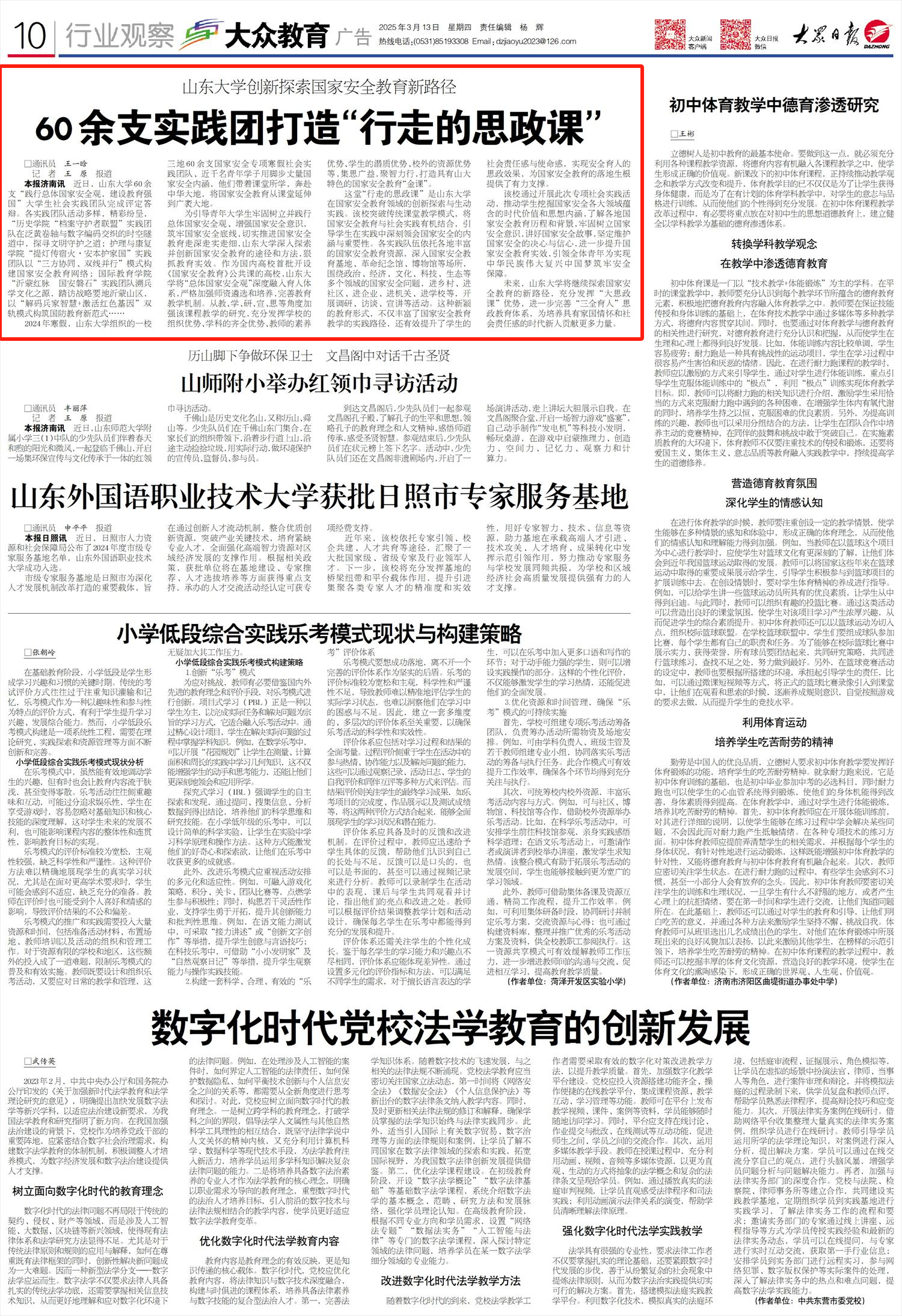 2024年寒假,山东大学组织的一校三地60余支国家安全专项寒假社会实践团队、近千名青年学子用脚步丈量国家安全内涵,他们带着课堂所学,奔赴中华大地,将国家安全教育从课堂延伸到广袤大地。