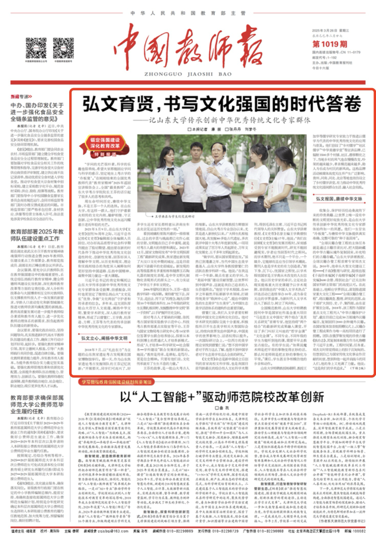 为国弘文、为国育贤、为国传道,周流不息、永无止境。在山东大学这片深受中华优秀传统文化滋养的沃土上,一大批传承创新中华优秀传统文化的学者正以实际行动做弘扬中华文明、促进世界文明交流互鉴的扛旗引路者,用责任和智慧为筑牢中国式现代化文化根基书写着具有山大风格、山大气派的“两创”答卷。