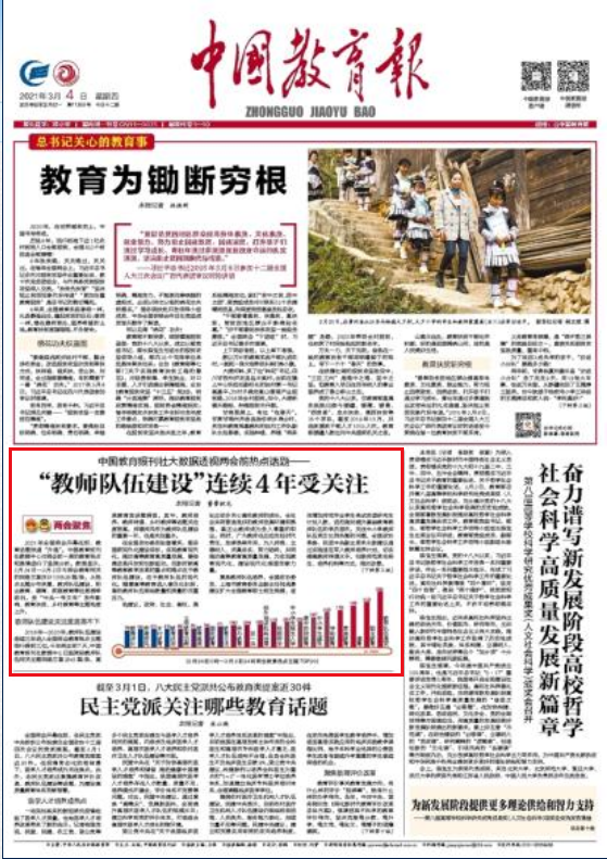 中国教育报刊社数据中心监测发现,受2021年“中央一号文件”发布影响,教育扶贫、乡村教育、留守儿童等主题热度上升。
