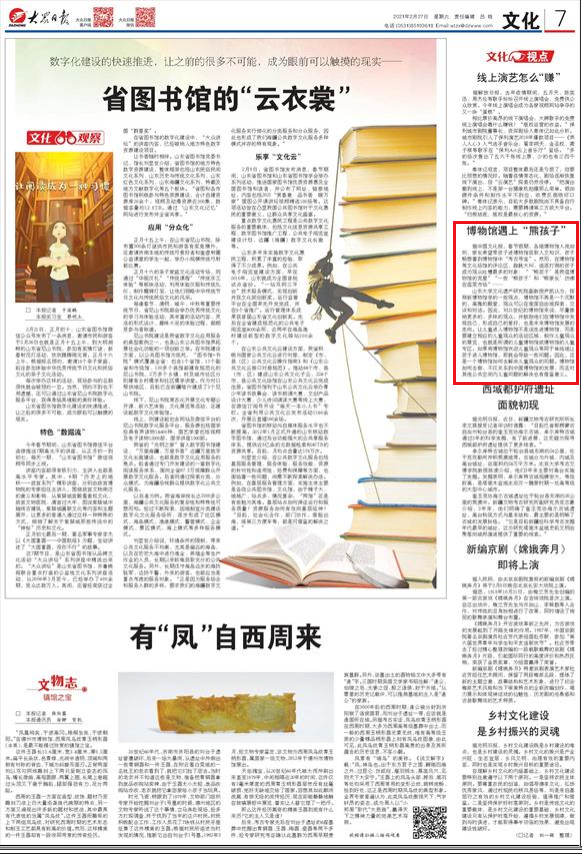 据中国文化报,春节假期,各地博物馆人流如织,家长希望带孩子进博物馆汲取人文知识,孩子畅想着到博物馆中“考古寻宝”。然而,在博物馆等文化场馆的评论区,跑跳大叫、追逐打闹的孩子成为观众吐槽最多的对象:“‘熊孩子’是我逛博物馆的克星”“一些‘熊孩子’和‘熊家长’仿佛在逛菜市场”……