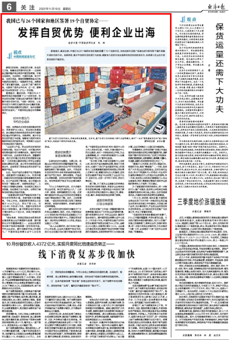数据显示,截至目前,中国已与26个国家和地区相继签署了19个自贸协定,加快自贸协定推广实施也成为新形势下稳外贸稳外资的切实行动。实践表明,高水平自贸协定的签订与实施,能够有力促进与有关国家和地区间的经贸合作,有效减少企业对外贸易投资的不确定性。