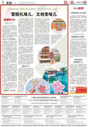 前不久,三星堆文创馆出品的青铜面具雪糕迅速蹿红,引发“全国文创雪糕大battle”。趵突泉雪糕也成为山东文创雪糕代表作之一,频繁登上热搜,“五一”期间,卖出了两万多支。台儿庄古城雪糕、菏泽牡丹雪糕、青岛教堂雪糕等也迅速推出,一时之间,文创雪糕被各大景区争相追捧。