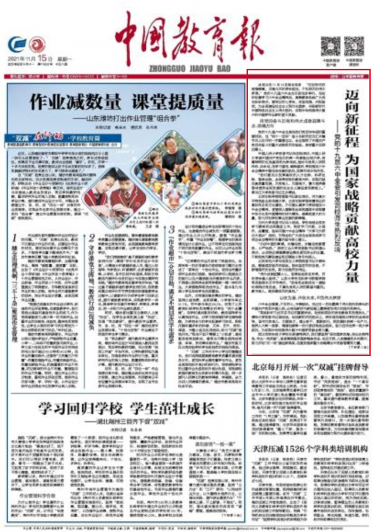 北京理工大学党委书记赵长禄说,学校党委将把学习宣传贯彻六中全会精神作为当前和今后一个时期的重要政治任务,把党的创新理论转化为办学治校思路,把学习成果转化为推动学校事业高质量发展的强大动力,努力建设让党放心、让人民满意的世界一流大学。