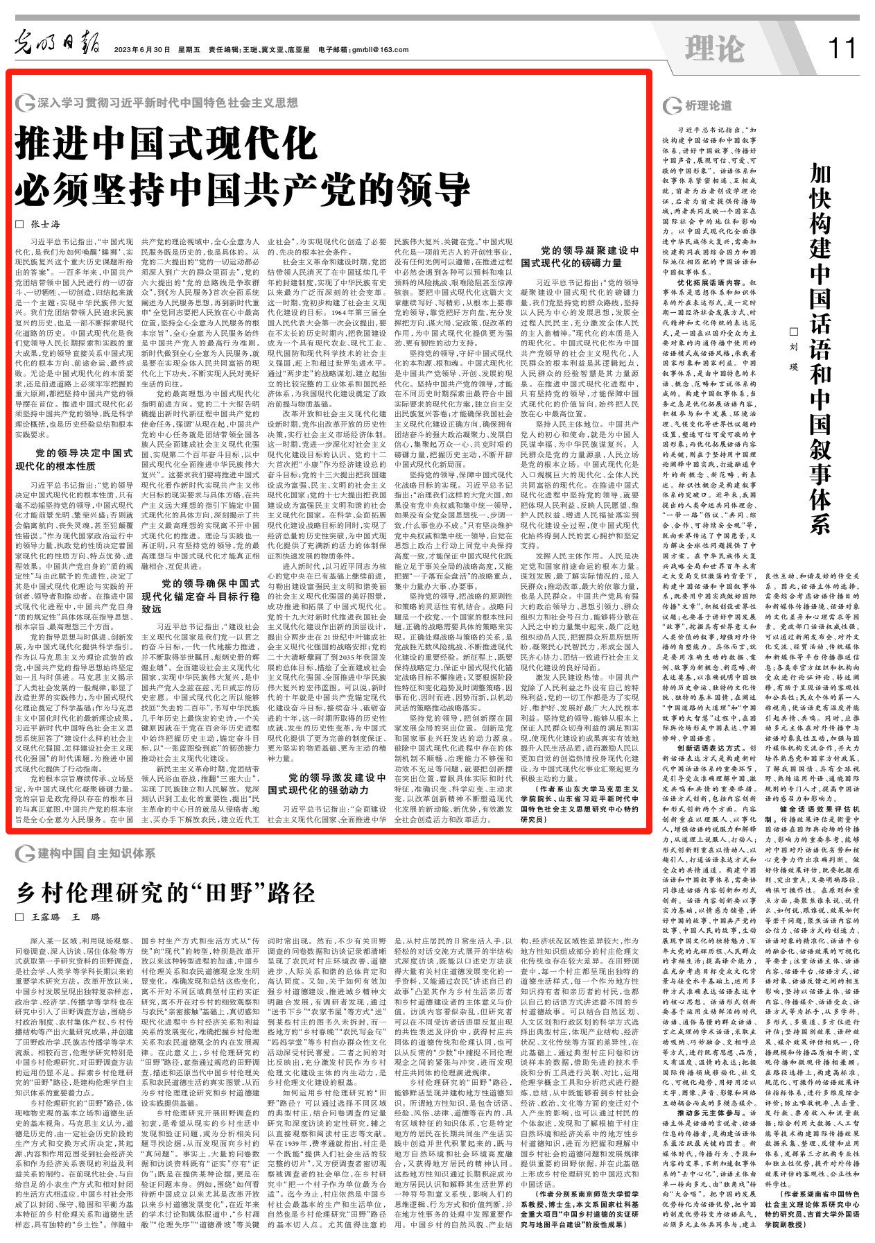 党的领导确保中国式现代化锚定奋斗目标行稳致远