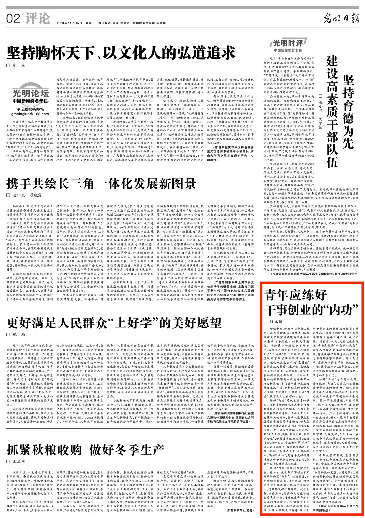 练好“内功”需修德与增才并重。德与才,是青年干事创业不可或缺的两驾“马车”。以德润身,才华方能适得其用;以才为辅,德便能更好发挥成效。德与才有机统一,德始终发挥统帅作用。德才兼备、以德为先,是党和人民选贤任能的基本标准,同时也是青年琢玉成器的内在持守。当前社会多元思潮相互激荡、各种诱惑层出不穷、机遇与挑战交织并存,这对青年干事创业的德才双修提出了更高要求。锤炼品德修为,始终应将爱国作为青年立身之本、成才之基。对国家、人民、民族之爱愈深沉,青年愈能将“小我融入大我”,锚定人生发展的正轨而不随波逐流,愈是能够以刚健勇毅的坚强意志不断攀登事业高峰。增长真才干,应着力求得真学问、练就过硬本领,使专业知识、业务能力、认知水平紧跟时代发展之需,增强驰而不息的青春之力。