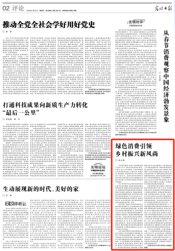 习近平总书记强调:“实施乡村振兴战略,一个重要任务就是推行绿色发展方式和生活方式,让生态美起来、环境靓起来,再现山清水秀、天蓝地绿、村美人和的美丽画卷。”以绿色消费引领乡村生产生活新风尚,加快形成绿色消费模式,必将为推动乡村绿色发展、全面推进乡村振兴持续发挥积极作用。