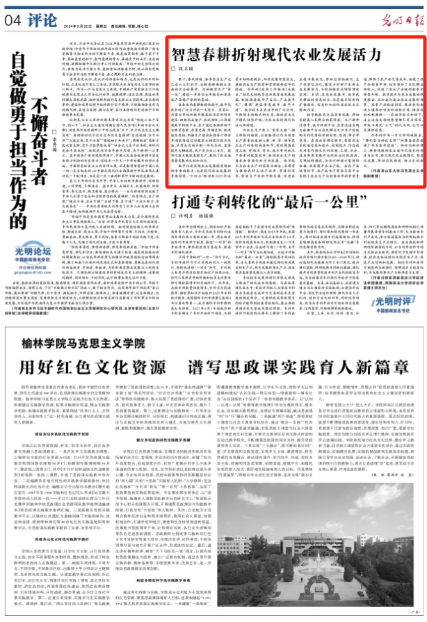 今年的中央一号文件明确提出,“强化农业科技支撑”“加强基层农技推广体系条件建设”。新时代新征程上,要持续做好农业数字化技术的普及与应用,助力现代农业规模化、智慧化发展,带动农民增收、助力乡村振兴。