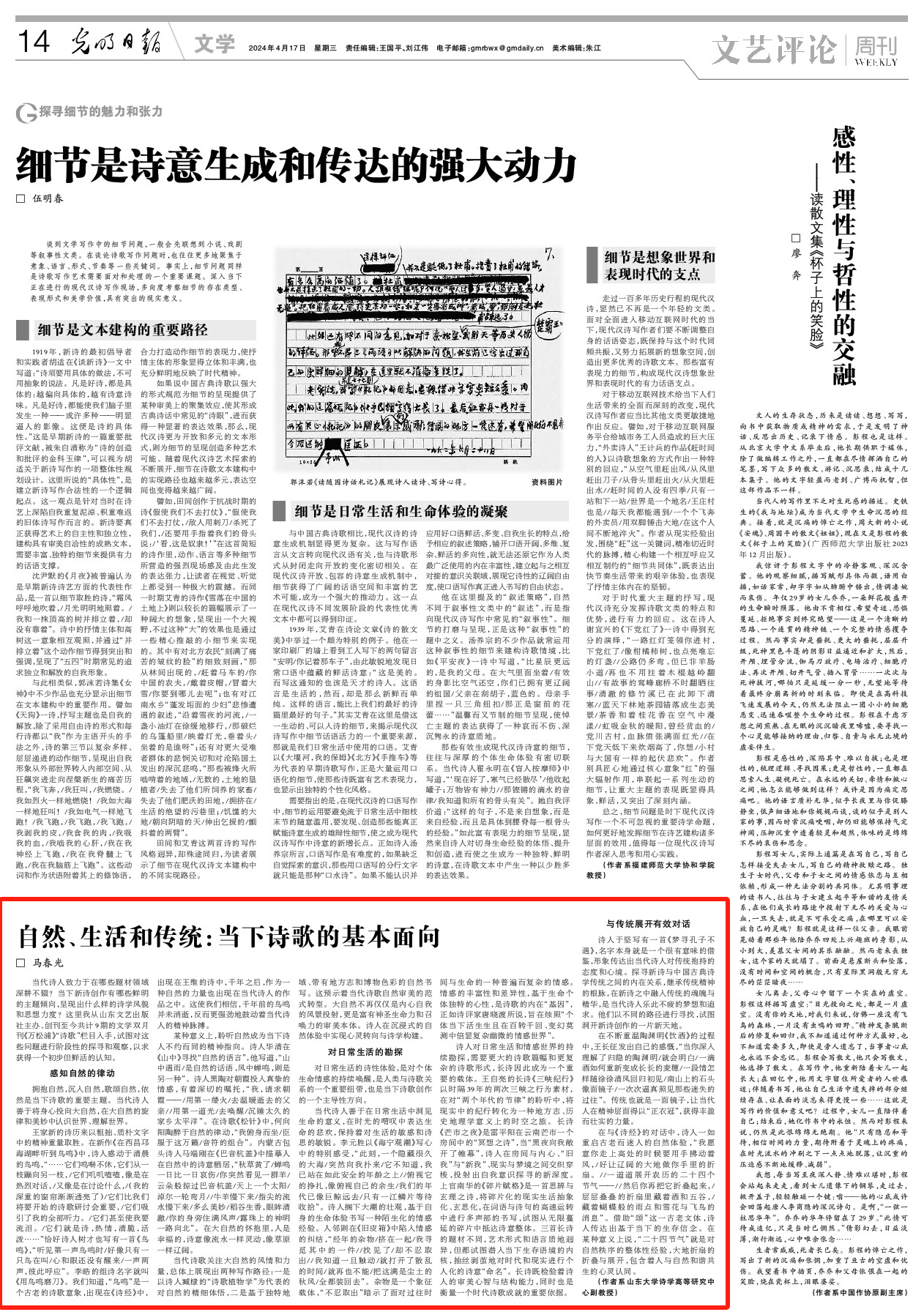 当代诗歌关注大自然的风情和力量,总体上展现出两种写作路径:一是以诗人臧棣的“诗歌植物学”为代表的对自然的精细体悟,二是基于独特地域、带有地方志和博物色彩的自然书写。这预示着当代诗歌自然审美的范式转型。大自然不再仅仅是内心自我的风景投射,更是富有神圣生命力和召唤力的审美本体。诗人在沉浸式的自然体验中实现心灵转向与诗学构建。