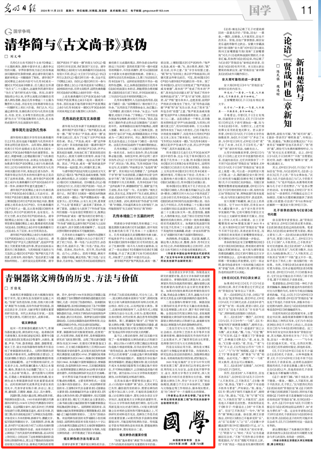 2021年起实施的“古文字与中华文明传承发展工程”,要求我们以传承弘扬中华优秀传统文化为宗旨,全面系统开展甲骨文、金文、简帛文字等古文字研究,深入发掘蕴含其中的历史思想和文化价值。青铜器铭文辨伪工作,符合“古文字工程”的总体规划,既着力于古文字本体研究,又能够与文物鉴定等工作相结合,服务现实需求,是“冷门绝学”中一片值得关注的领域。