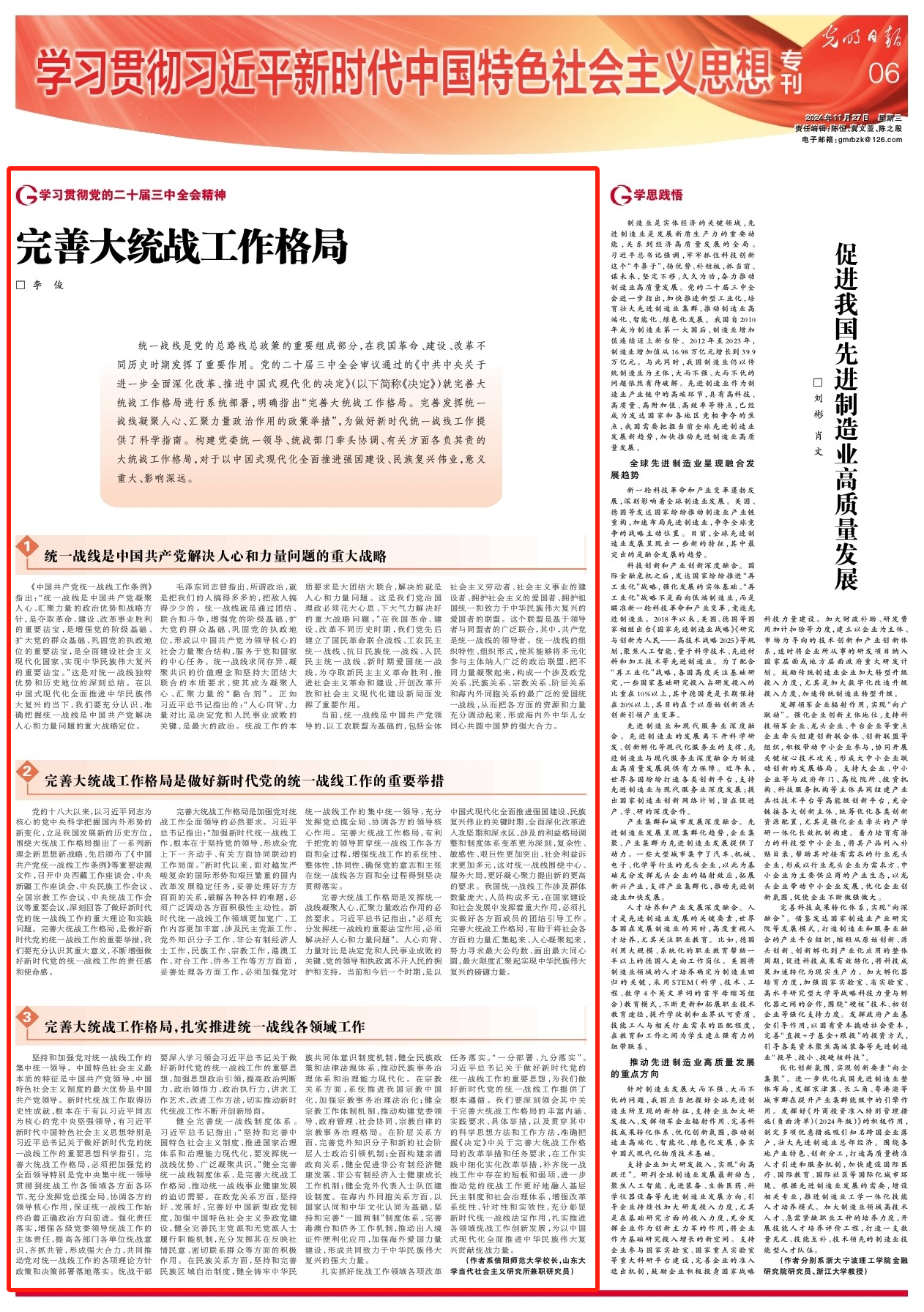 3.完善大统战工作格局,扎实推进统一战线各领域工作